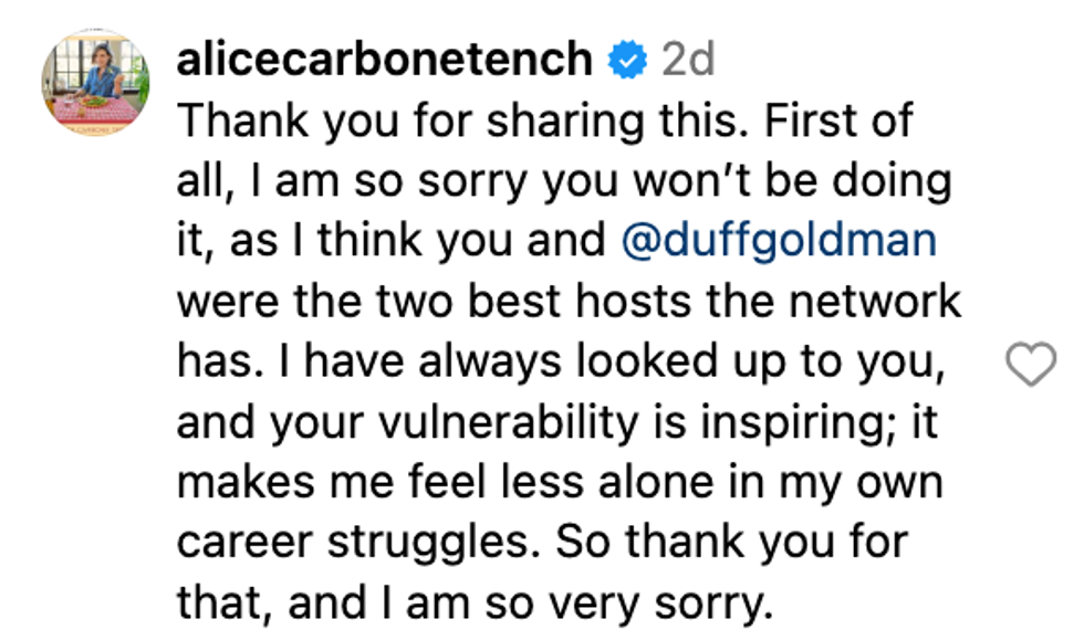 “Logically, I know that it’s business ― budget cuts, right? But it really hurt my feelings to know that I’m not going to be asked back to be on ‘Kids Baking Championship.’ Really sucks.”
