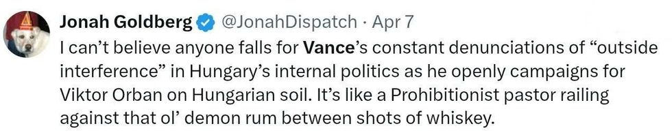 Vance was in Hungary to support the country’s far-right leader Viktor Orbán just days before the country’s parliamentary election, despite repeated claims the United States wasn't interfering in Hungarian politics.