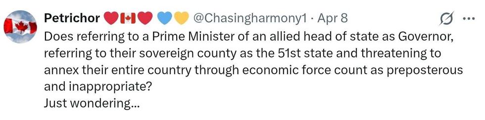 *Stares in Canadian and Greenlander*I wonder if Trump realizes Vance is out there campaigning against him.