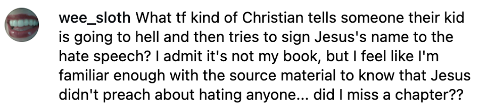 âLet me school you, real quick on a few things⌠& every other so called 'Christian' bible thumper coming to MY PAGE to tell me that my son is going to hell."