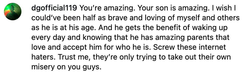 "First of all I'm so sorry that you are so lonely & unhappy that you have to involve children in your self hatred, projection spirals but I promise you that my kid just feels sorry for you. He's happy.â
