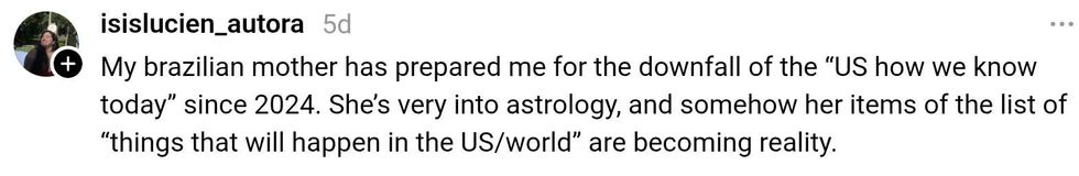 Lutin also said the country would experience an "internal political struggle" that "will shake us to our very core." The greatest time of upheaval would come between 2015 and 2019—the rise of MAGA, election of Republican President Donald Trump, and the early days of COVID-19.