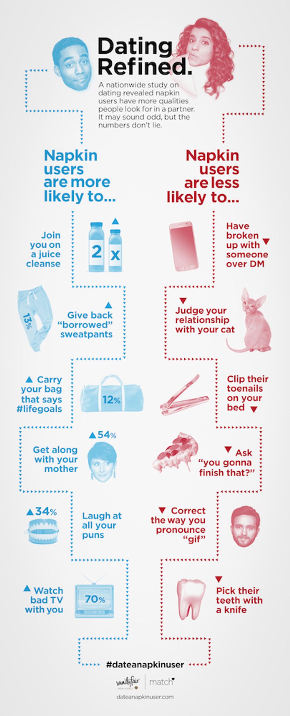 To show how napkin users have likeable attributes over their non-user counterparts, Vanity Fair created an Infographic to compare the two camps of people.
