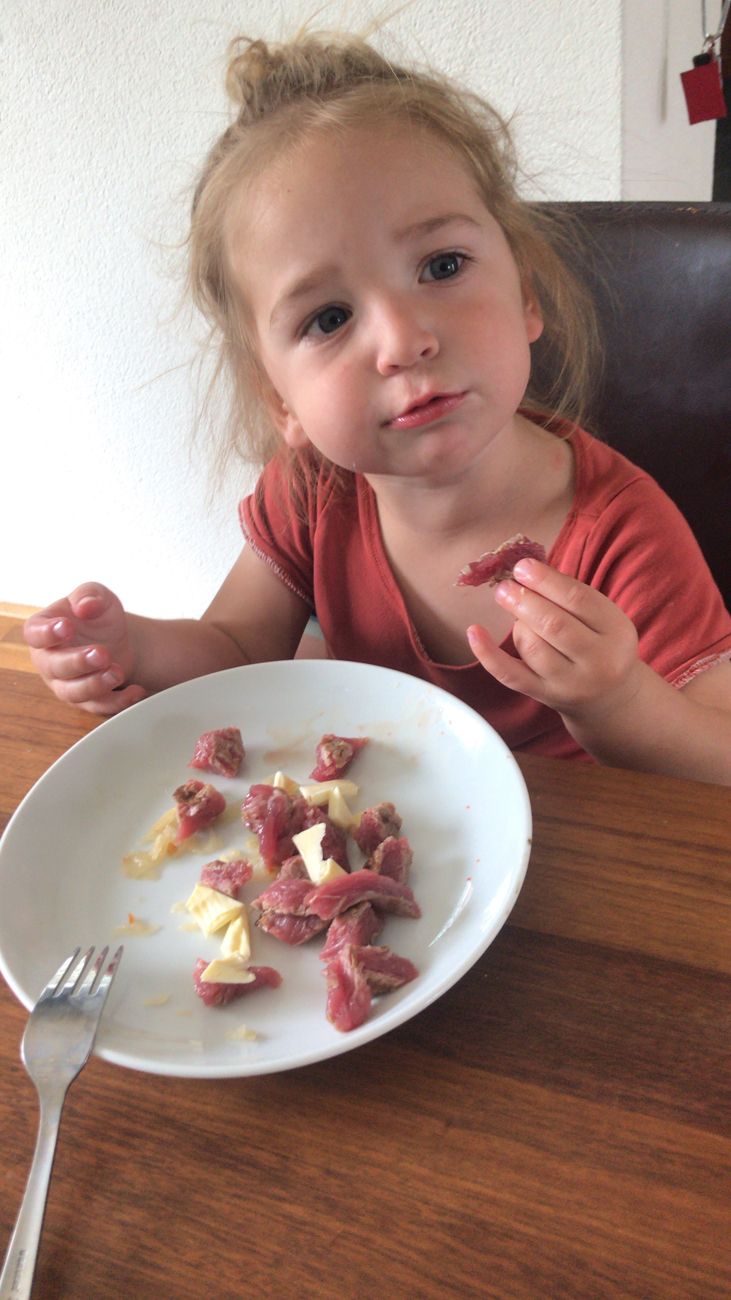 Now, still refusing to take prescribed medication, she eats raw steak or raw offal for breakfast, followed by a cooked meat dish such as slow cooked lamb shoulder for dinner.