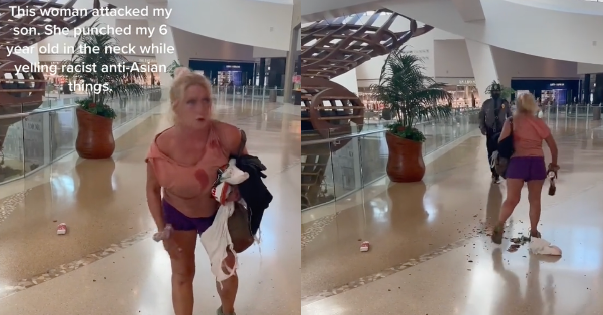 Following the woman's violent attack on the child, the boy's mother followed her into the mall to film her continuing rant.