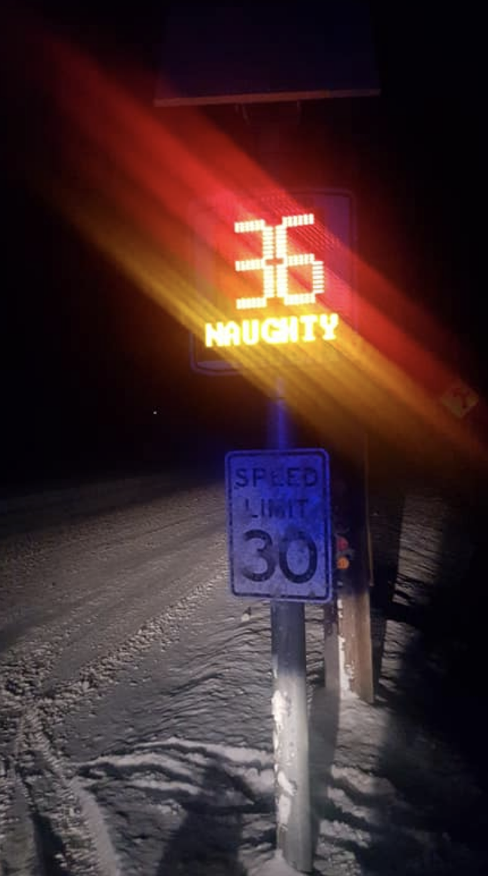 However, drivers breaking the speed limit see the sign in red, indicating they are "naughty."
