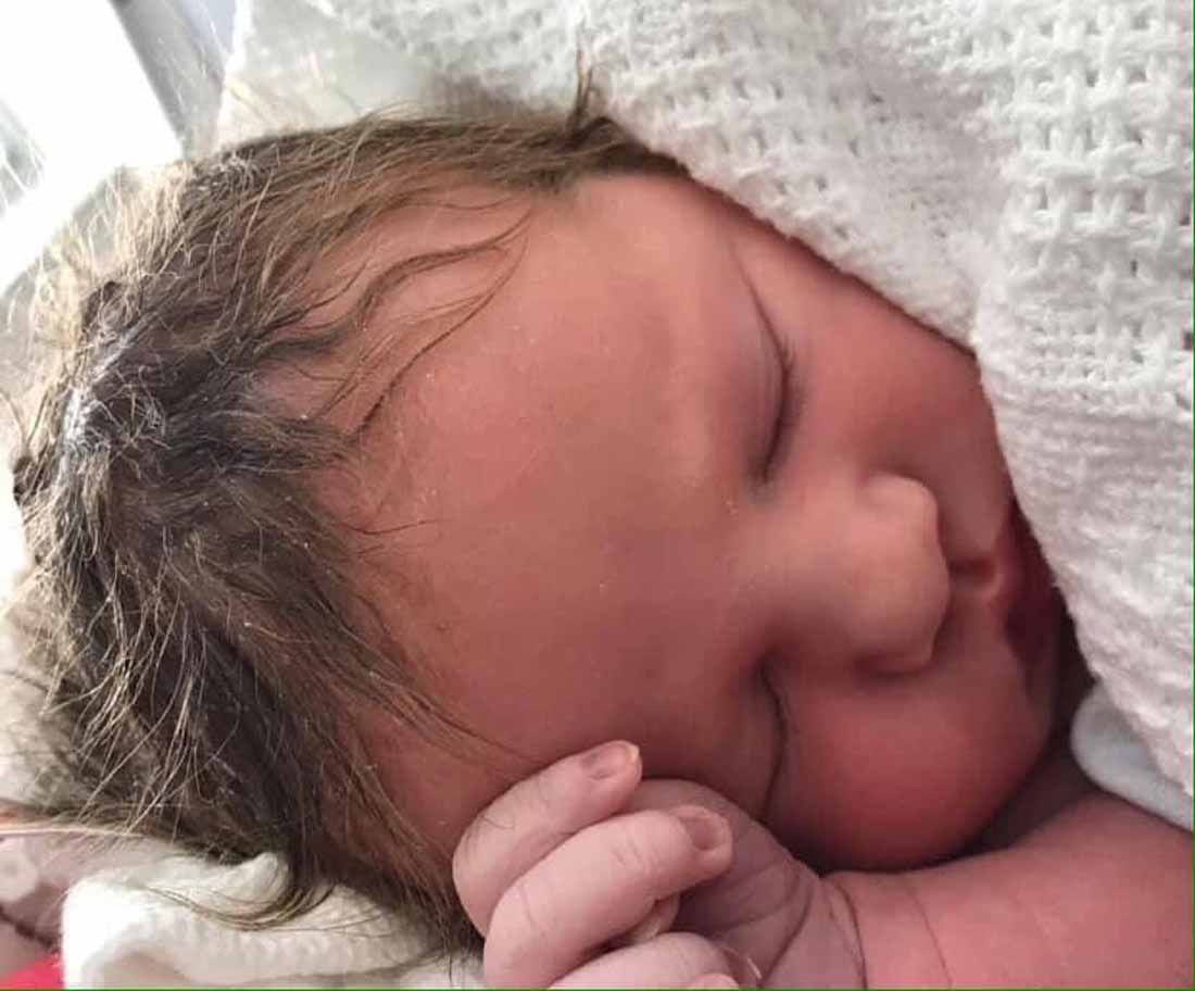 “The midwife had to put a clip on her head to monitor her heartbeat, but she was finding it hard to actually attach it, because there was too much hair.