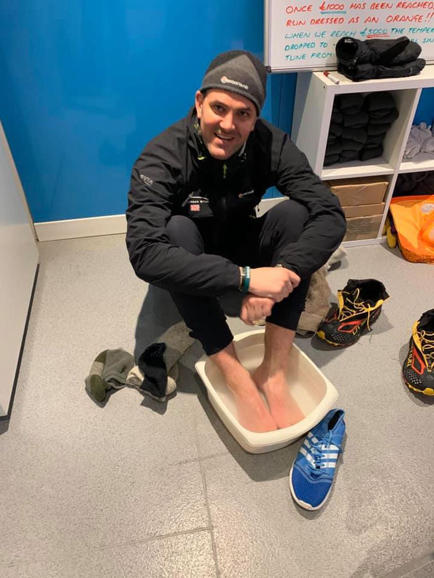 "It was more of a bad choice of footwear because I would normally wear a trail running shoe with grips in the colder conditions, but I was running in a normal running shoe which was not insulated very well, so I changed to a trail running boot half way through and it was fine," he added.