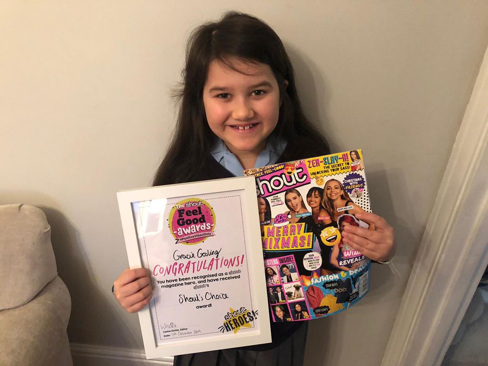 Gracie has recently been honored by Shout magazine as part of the first ever 'Feel Good Awards' celebrating brands, people and products that are influential and important in readers lives. The 'Shout Squad' award was created just for her, as a special acknowledgement of her amazing journey.