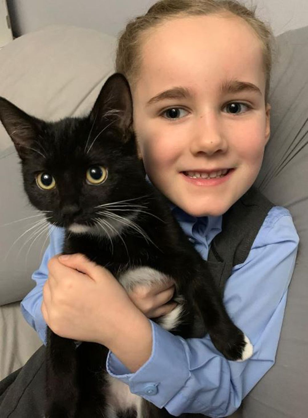 After three weeks, the family were matched with two kittens – Evie, who was taken from a home that could no longer care for her, and Teddy, the only surviving cat from his stray mother's litter.