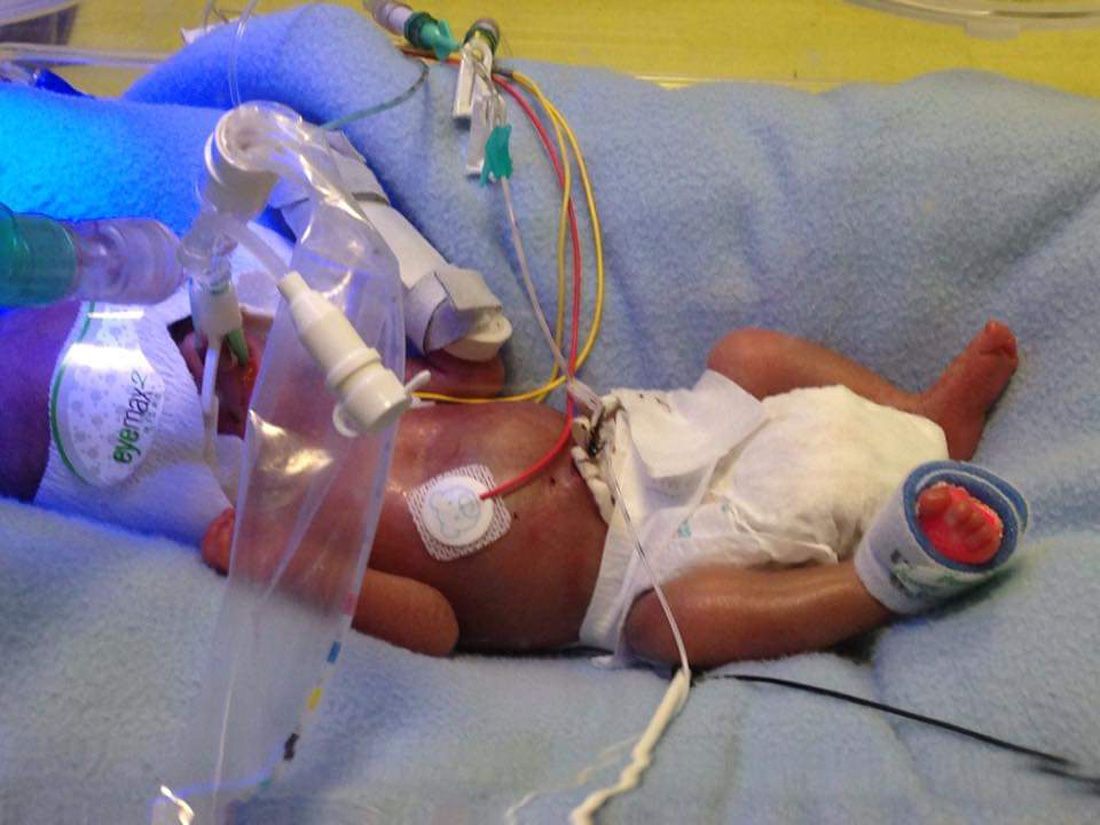 Tyler was delivered by c-section on Monday June 8, 2015 at 12:21pm, weighing exactly 500g (1lb 1oz) at 31 weeks and 5 days.