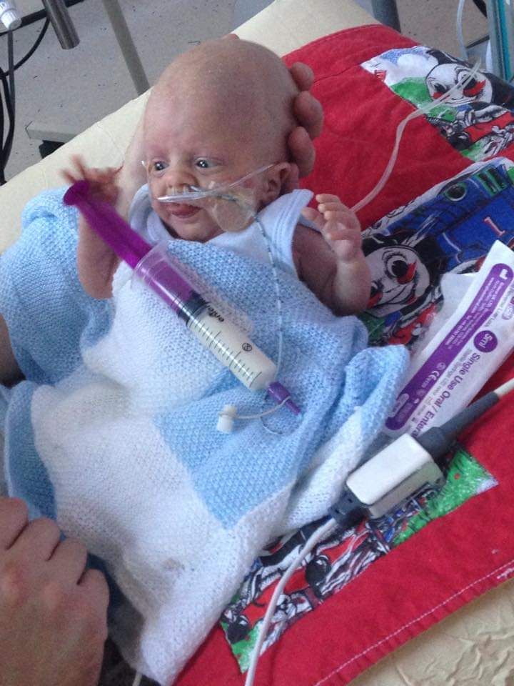 Sadly, though, the operation was unsuccessful, because his bowel was kinked, and at three weeks old he had his second major operation to try and fit it again.