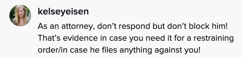 In spite of her display of levity, some users were worried and suggested she not block him in case this goes to court.