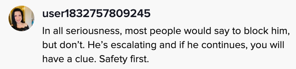 "The level of crazy I'm immersed in right now with this man who will not stop leaving me voicemails is just...I should be frightened. I should be very scared for my safety and yet I am also so amused," she said giggling in a different follow-up video.