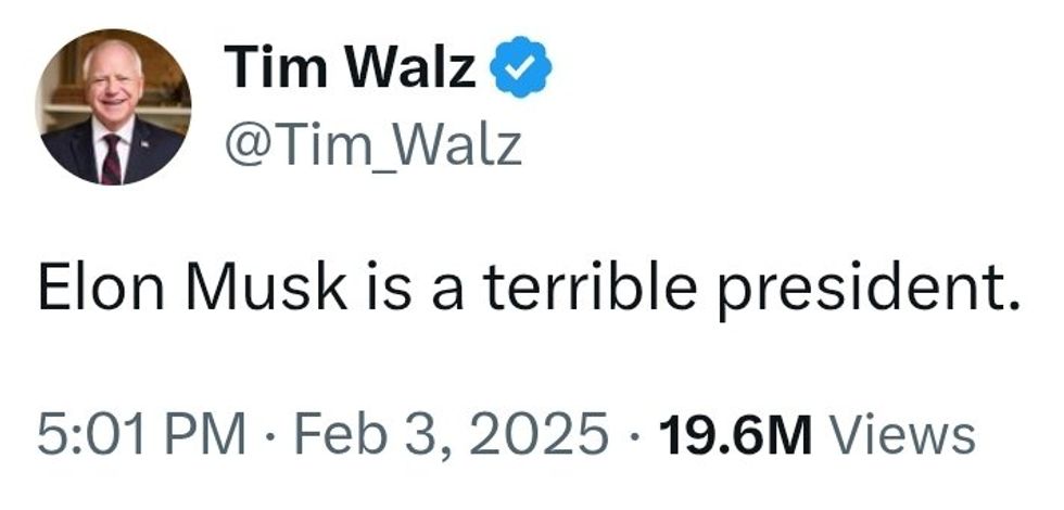 Walz's post came as other Democrats spoke out against Musk’s unfettered access to personal data and payment information for American citizens, despite never being elected, vetted, or confirmed for a government position.