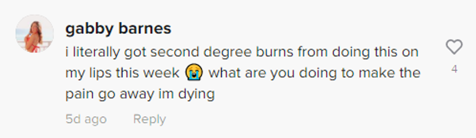 The second video was a series of photos of her healing lips, which looked red, brown, and burned compared to the previous video, and they were obviously peeling.