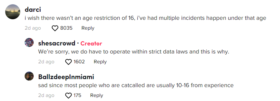 Creators understand that underaged harassment and violence happen, and encourage younger victims to call the police and have someone older log the incident in the app because they would like to stand against harassment of kids as well.