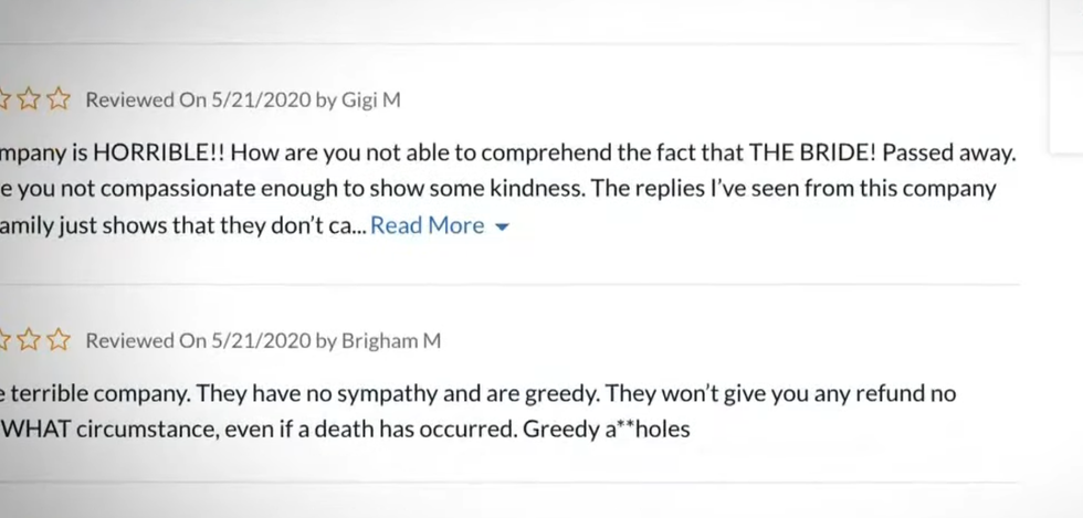 At that point, Wyatt's mother—along with other friends and family members—wrote poor reviews on The Knot, a wedding planner site.