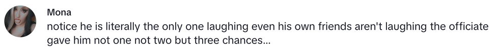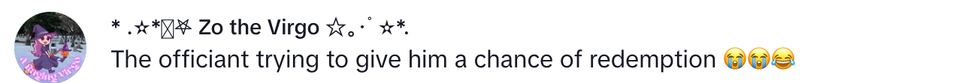 Clearly unamused, the officiant even tried to urge the groom to say something else.