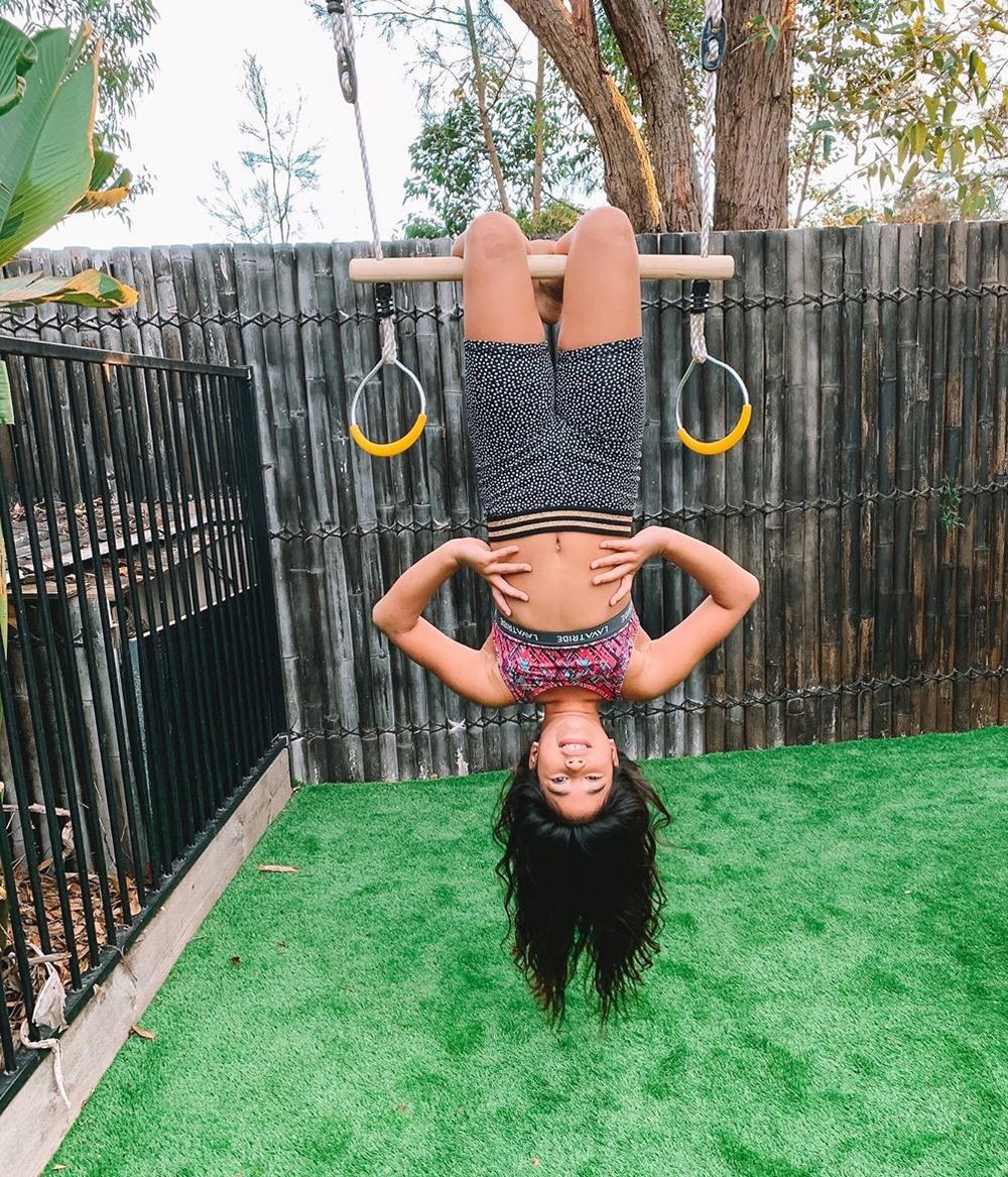 Training five times a week, the Australian youngster enjoys gymnastics, netball and high intensity drills more commonly associated with Olympic weightlifting—including squats, burpees, kettlebells and planks.