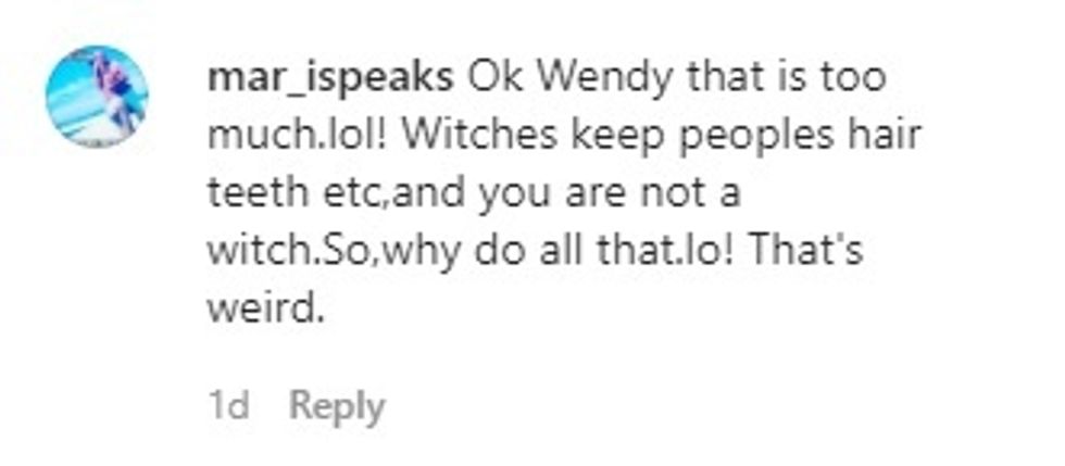 The comments went on telling her how creepy it was for her to keep so many biological items. The comparisons to witchraft and voodoo were pretty common; and of course some folk just thought the whole idea was gross.