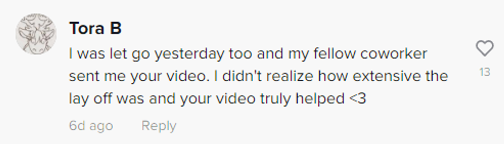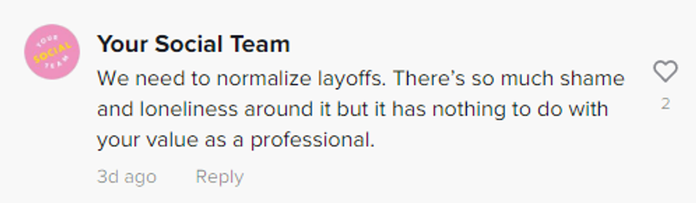 "I was so embarrassed to tell people that I got laid off yesterday, and the experience has been the complete opposite."