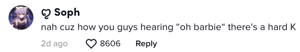 But all many can hear is, "Oh, f**k!" instead of "Oh, Barbie!"