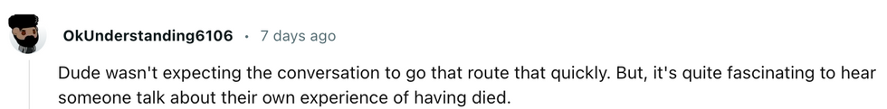 In a now-viral video shared by Redditor Sufficient-Bug-9112, a man who was pronounced dead explains to a street interviewer what dying feels like.