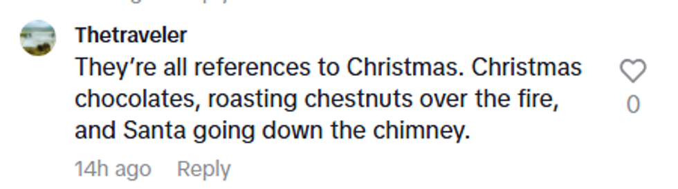 When found in a letter to Santa, these would likely be used in such ways as "Christmas chocolates" or "a stocking full of chocolates," "chestnuts roasting on an open fire," and of course, "be careful on your way up and down the chimney!"