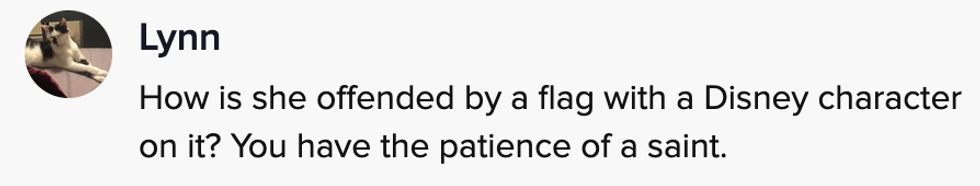 When Ambrosia explained there wasn't a homeowner's association stipulating against the decoration of a Disney character based on a stuffed animal in the neighborhood, the woman echoed her displeasure with: