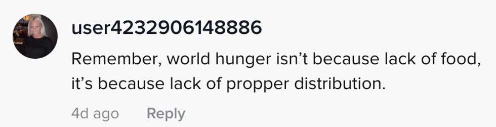 Capitalism means there is enough food to feed the starving peoples of our communities, yet companies would rather throw away product than give away unused products for free. Whole Foods, now owned by Amazon, have become a prime example of this.