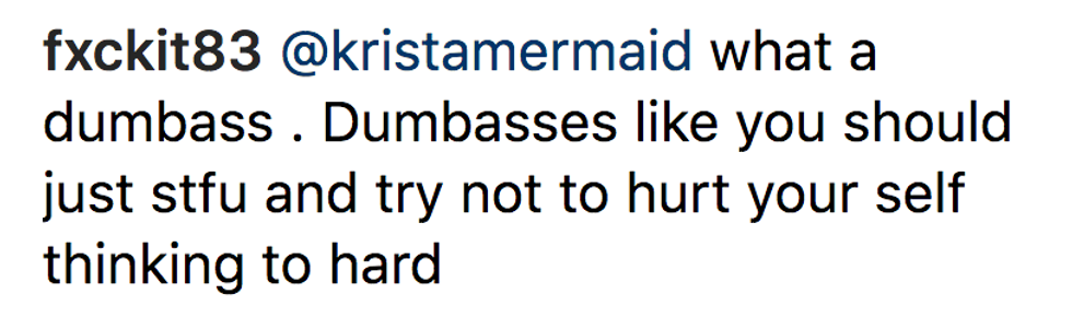 "That's a lot of fake hair in one picture," wrote the troll.