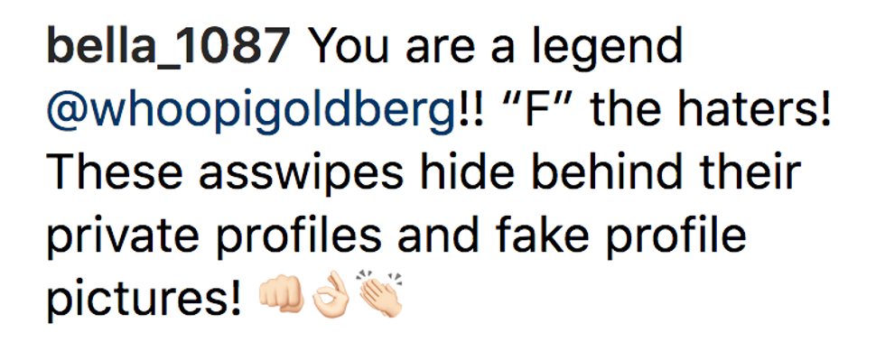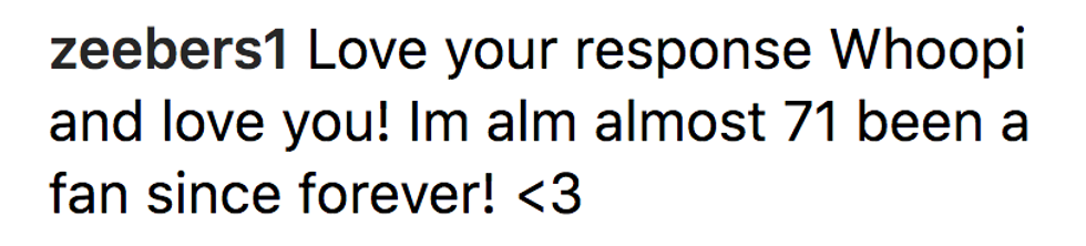Goldberg shot one down when an insensitive Instagram user commented on a recent post of her after attending a performance of the West End production of the biograpical Tina: The Musical.