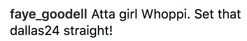 However, someone going by the handle "dallas024_" left a ridiculous comment scrutinizing Warren's wig and Goldberg's hair that was featured on the Instagram account "Comments By Celebs."
