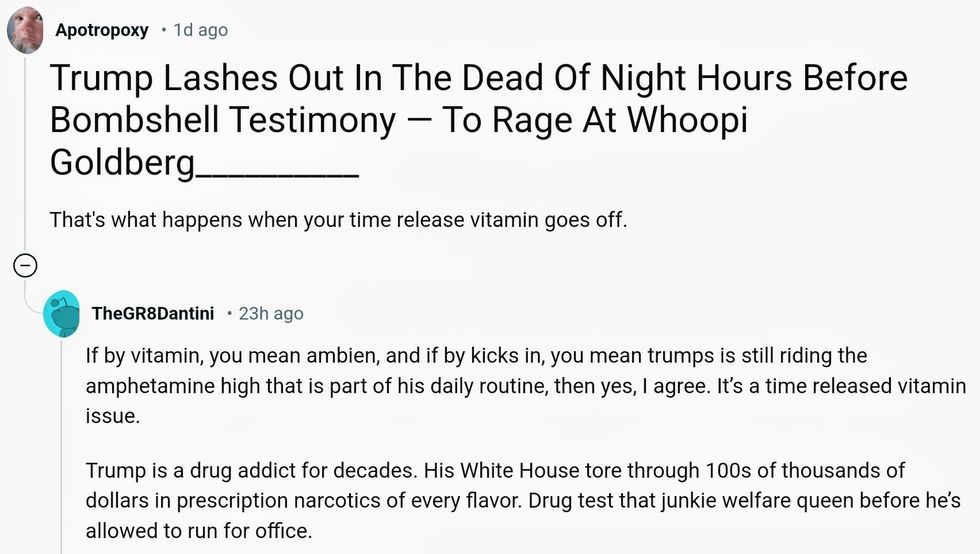 That morning at 1:22am, Trump took aim at Goldberg on his floundering social media platform, Truth Social.