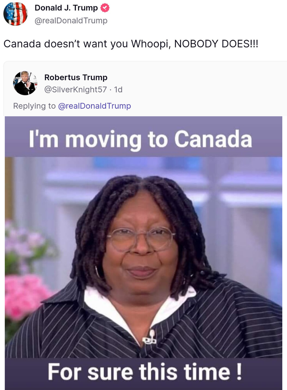 "Canada doesn’t want you Whoopi, NOBODY DOES!!!"