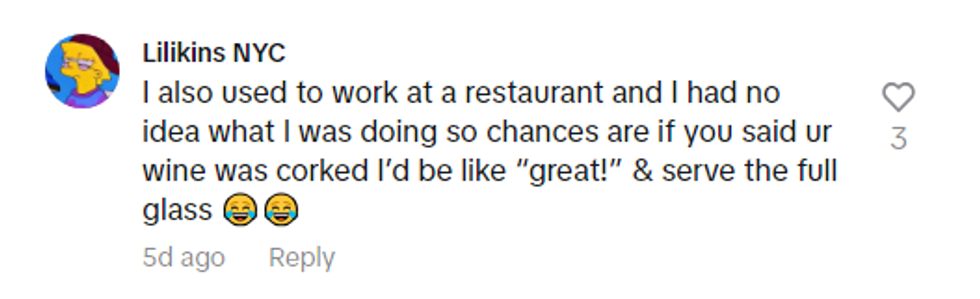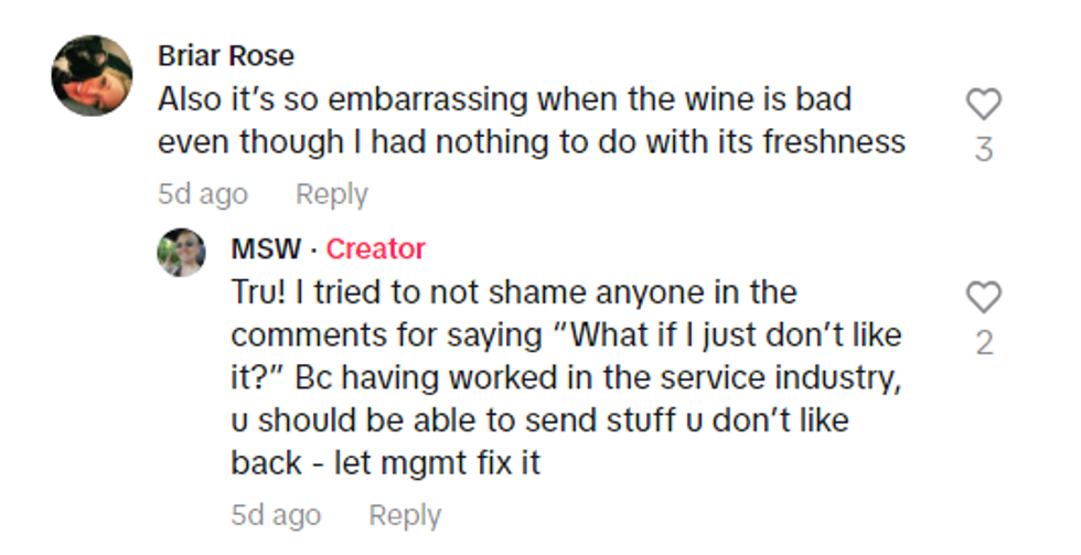 But TikToker and former server @trashqueentm pointed out that trying the wine was not to make sure that the customers liked the wine.