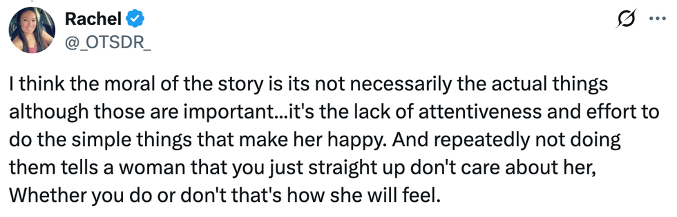 TikToker Jennifer Readon shrugged, though, and pointed out that the dynamic of a relationship dissolving generally comes down to something pretty simple: the straw that broke the camel's back.
