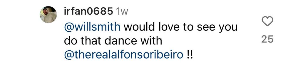 The supportive comment from Smith added a sentimental touch, considering the duo's history on the set of The Fresh Prince of Bel-Air, where Ribeiro regularly performed "the Carlton."