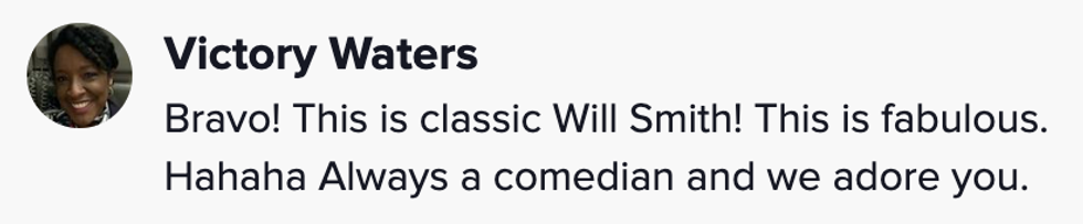 As if on cue, Smith casually picked up his Oscar statuette that was up until now out of the video frame, looked at it, and turned his focus back towards the camera.