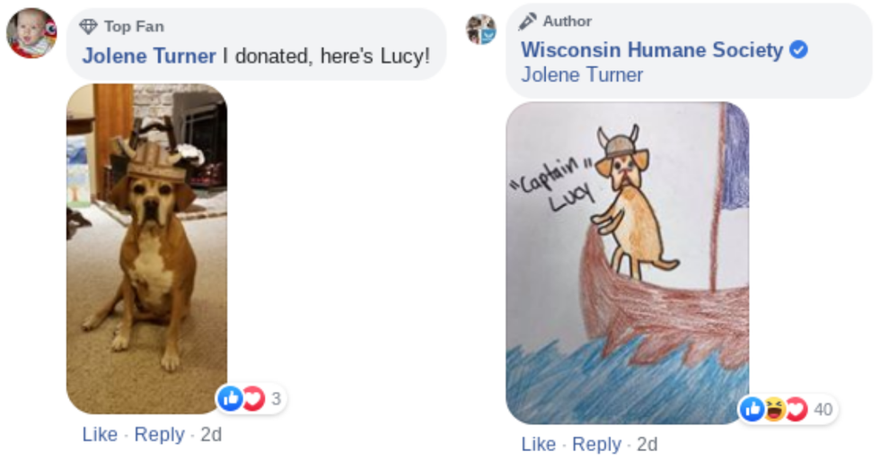 The quips throughout the original call for submissions and in the thankful update are almost as plentiful as the hilarious renditions of their donors' pets.