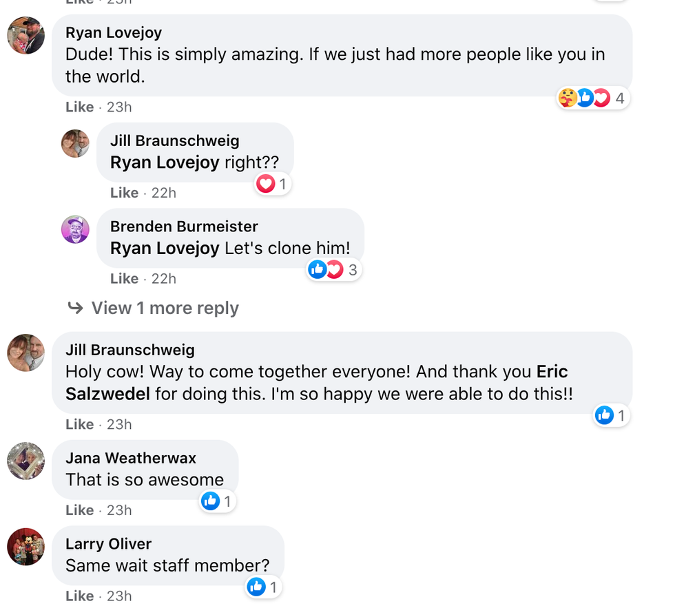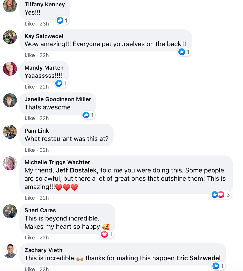 Salzwedel's kind and selfless gesture warmed the hearts of countless people, who expressed the joy this story brought them on Facebook.