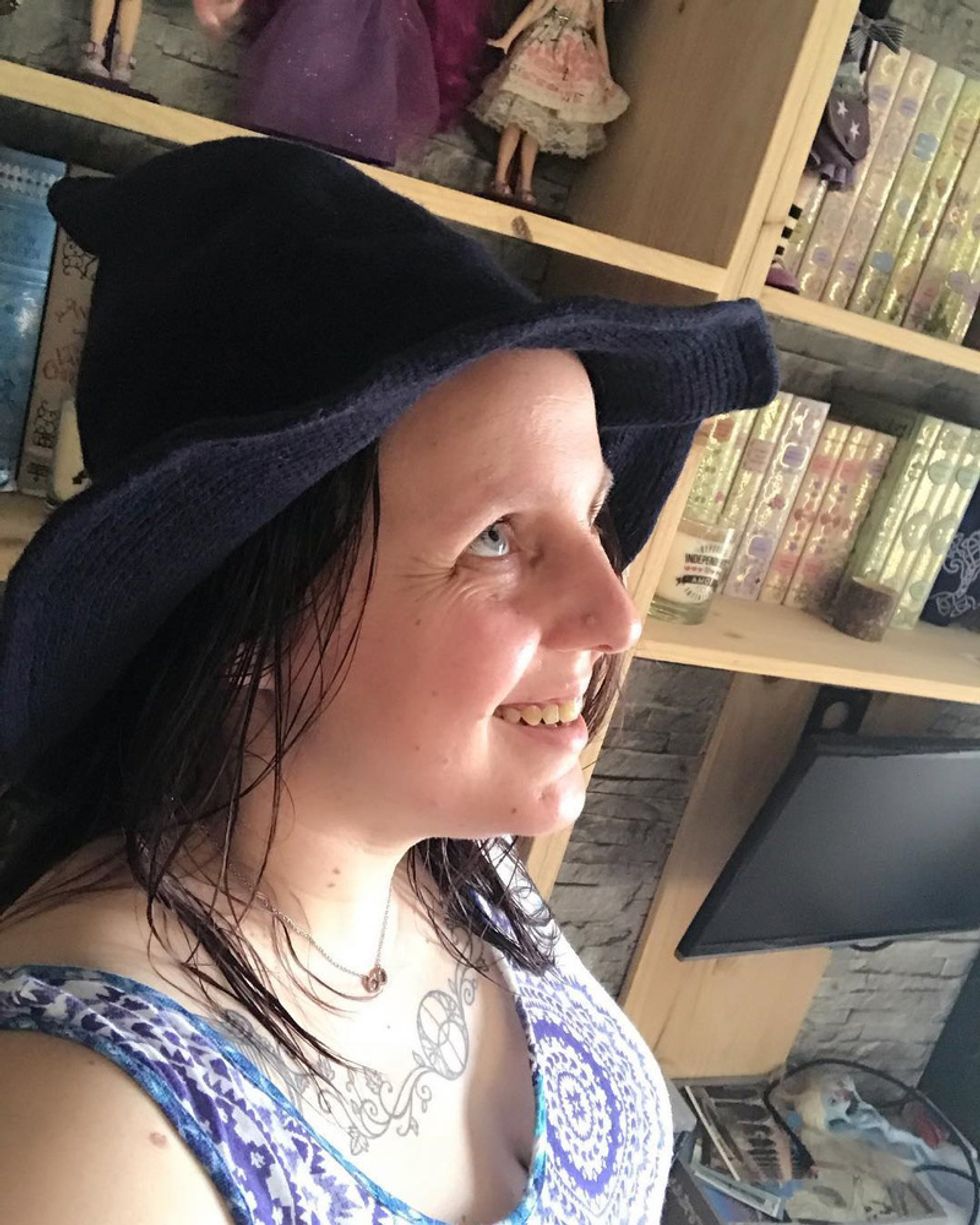 For Sonia, the tools of her trade, as well as her cauldron, include a wand – used to channel energy and to write the name in the air of people she wants to protect – and a pointed hat, which again, she channels energy upwards through. It also helps her to be recognised by strangers as a witch.