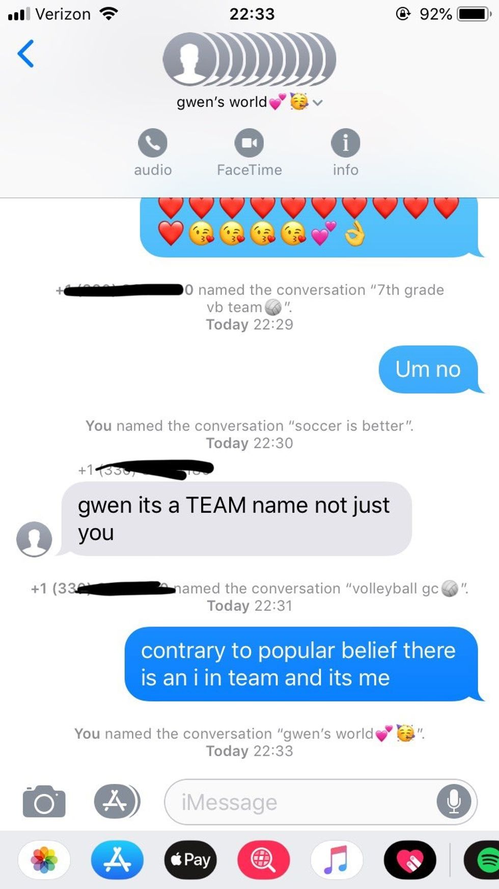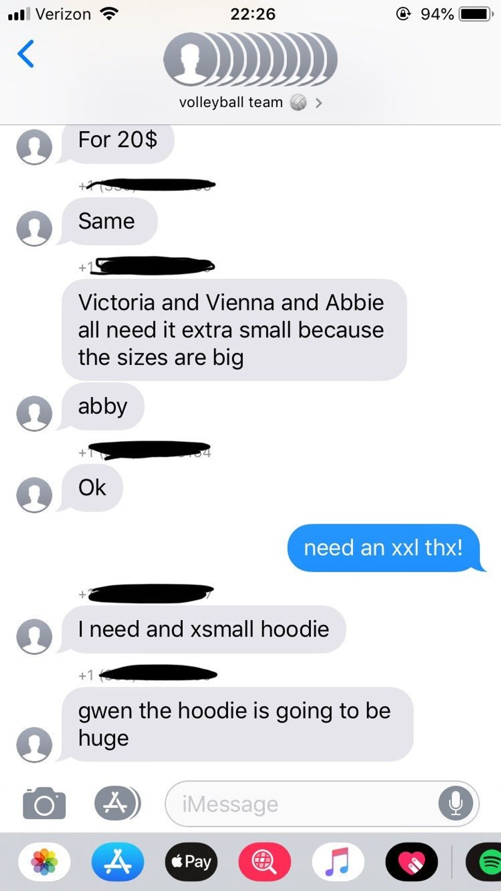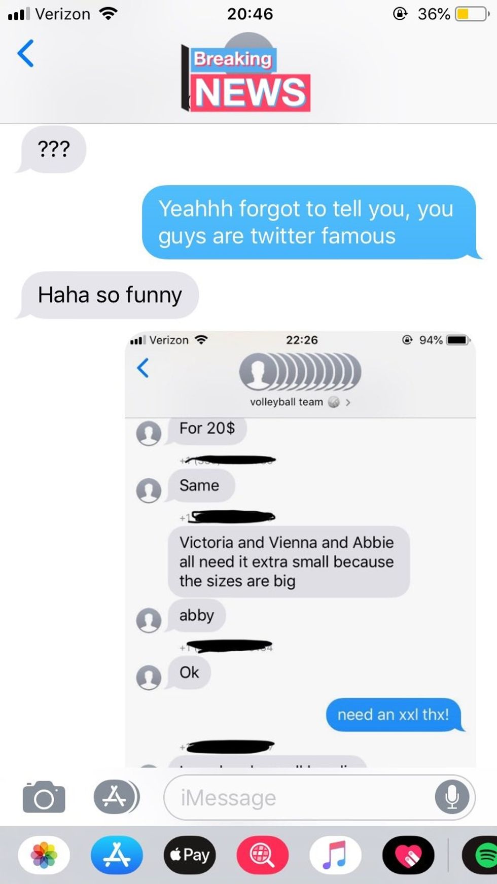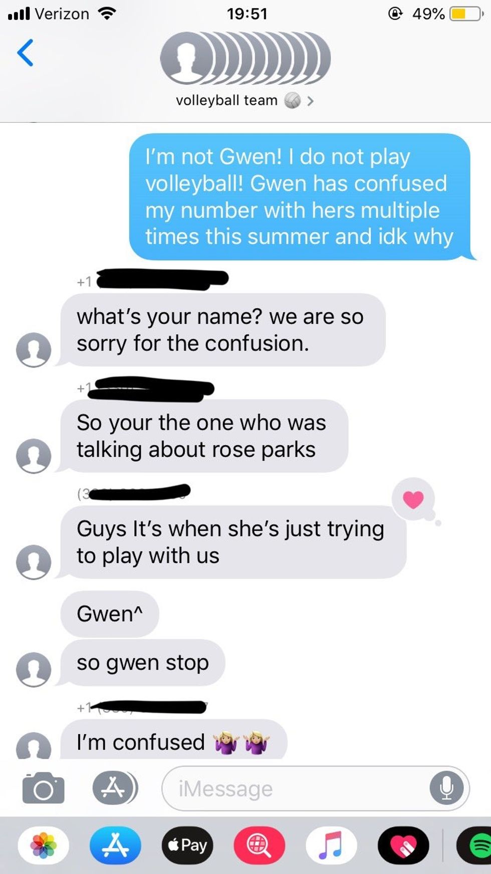 'Not Gwen' was added to a group chat of a 7th grade volleyball team. The players didn't realize their mistake for a little while, as Not Gwen requested an XXL hoodie in Gwen's name.