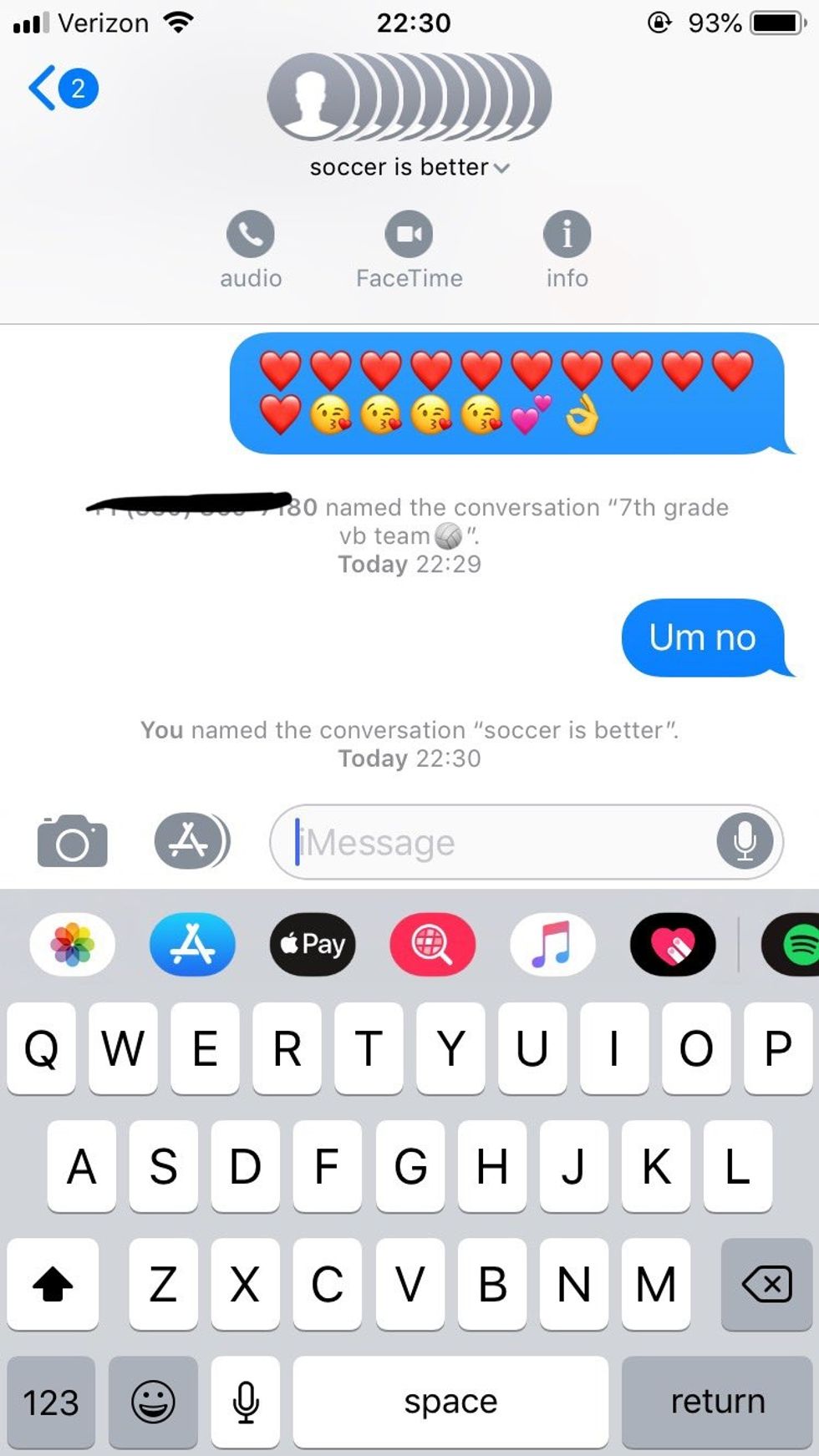 She followed up by changing the name of the group chat to "soccer is better".