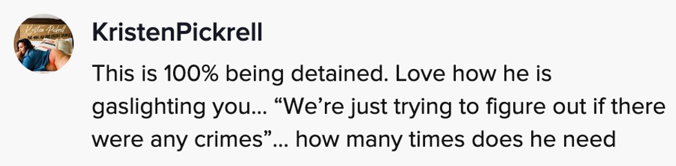 The officer explained to her they were just getting her side of the story versus the one described by the airlines' staff.