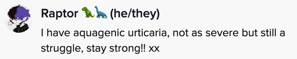 "It can last anywhere up to three hours after the initial contact with water. When I jump out of the shower, I'm in a lot of pain."