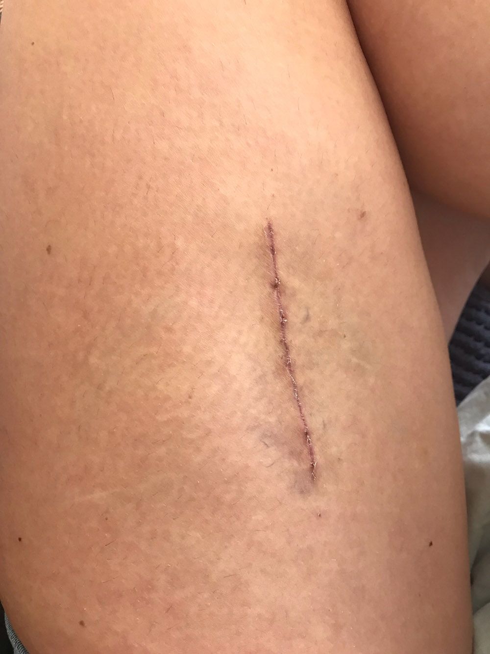 The scar on Emily's thigh after her fat graft (PA Real Life/Collect)