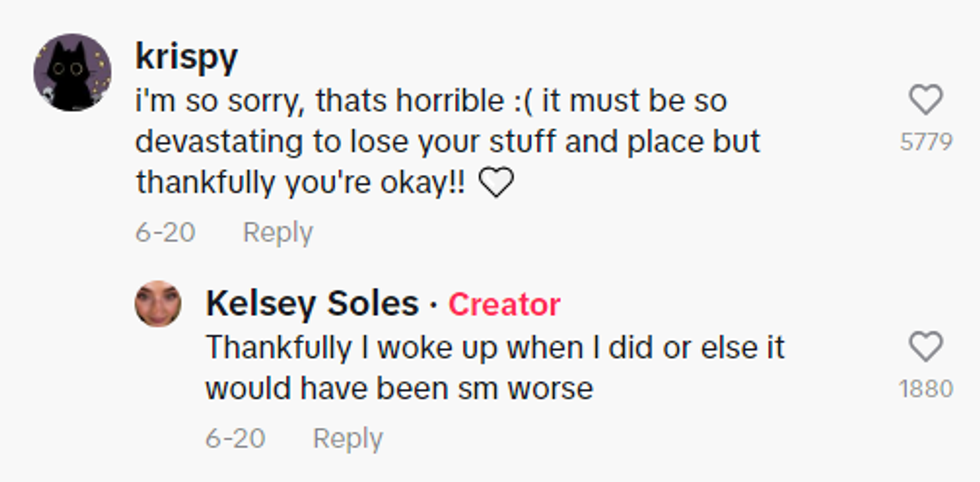 TikToker Kelsey Soles recently experienced a literal nightmare upon waking when she woke up and realized her entire apartment was on fire, as a result of an electrical issue.