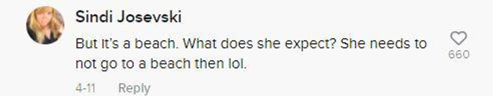 In a tiktok with 88.5 thousand likes, @savysimsyo recounted the moment after she laid down on the beach:
